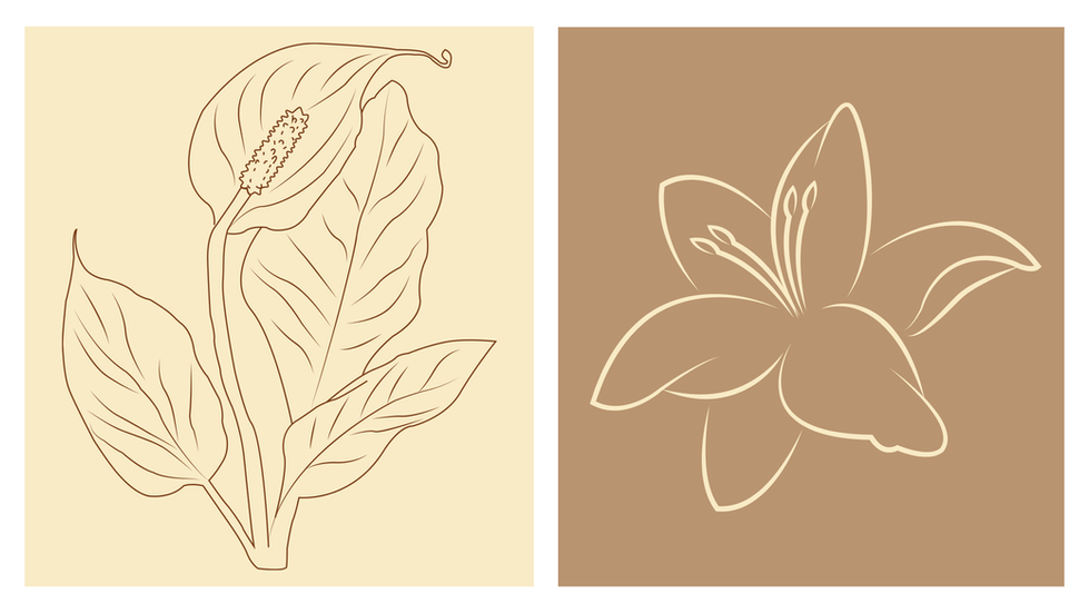 As principais referências visuais para o projeto foram: estilo rústico elegante, lírio que significa paz, a serenidade de um fim de tarde e o aconchego da chama.